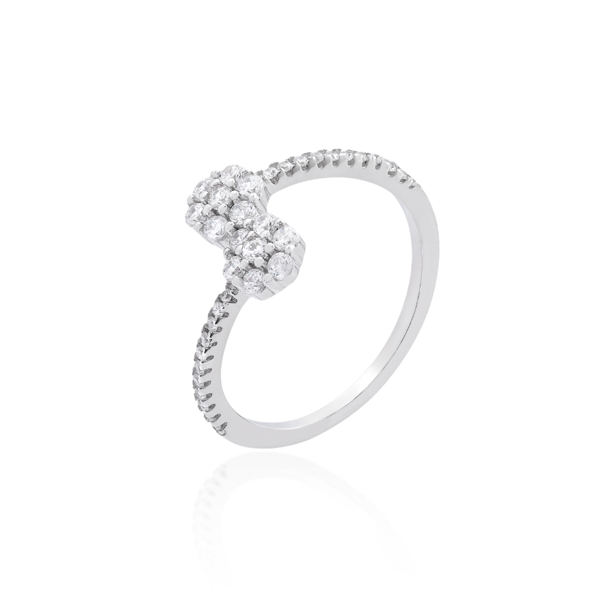 O Anel Entreaberto com Meia Cravação e Duas Flores é confeccionado em Prata 925 e possui design elegante com duas flores formadas por zircônias, trazendo brilho e leveza à peça.