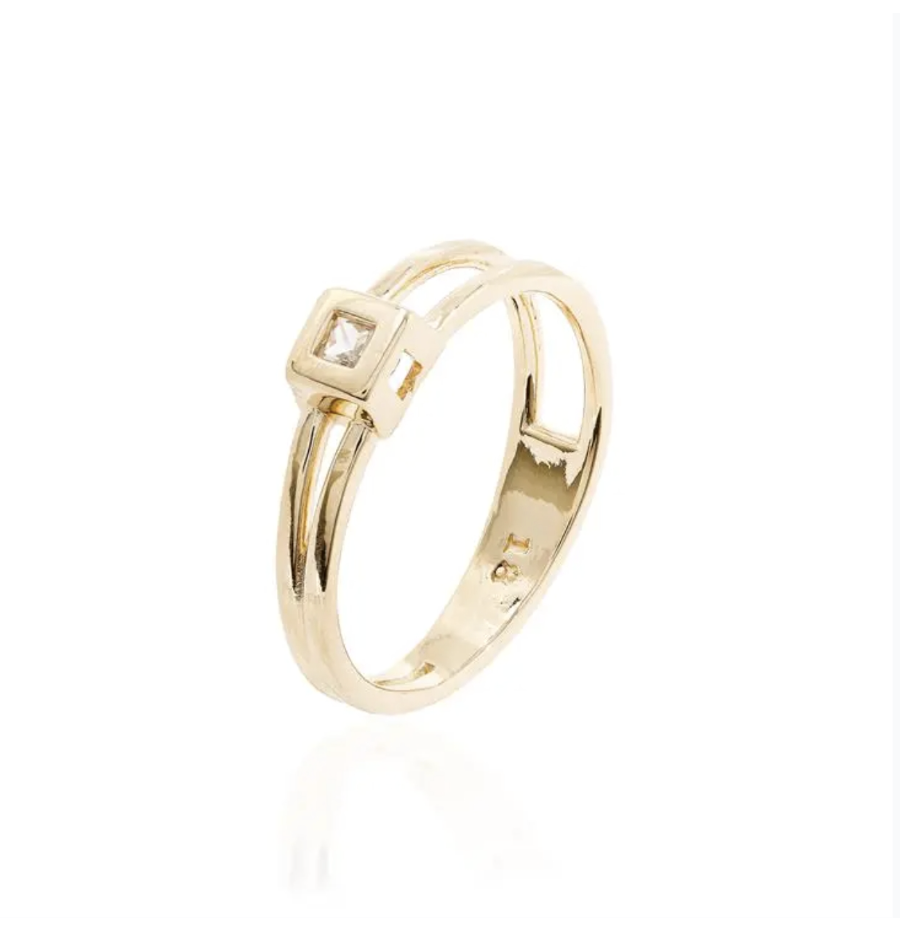 Anel Liso com Lado Aberto e Detalhe Quadrado Central 2mm