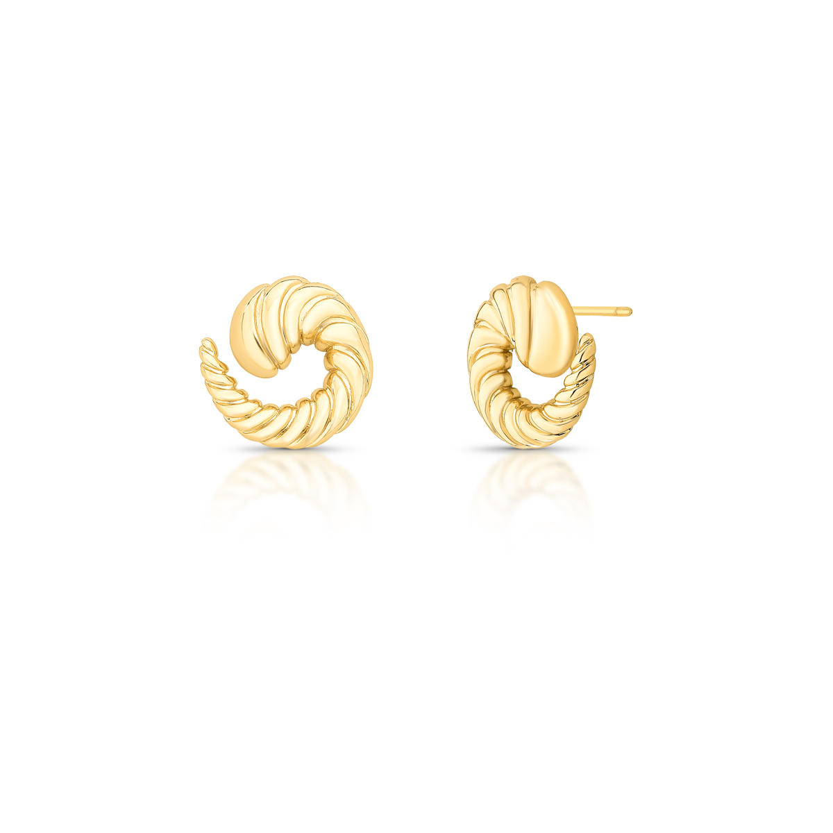 O Brinco Médio Trançado traz um design curvo com acabamento trabalhado e detalhe vazado, criando um efeito sofisticado e contemporâneo. Seu formato levemente arredondado valoriza o rosto e garante presença na medida certa.