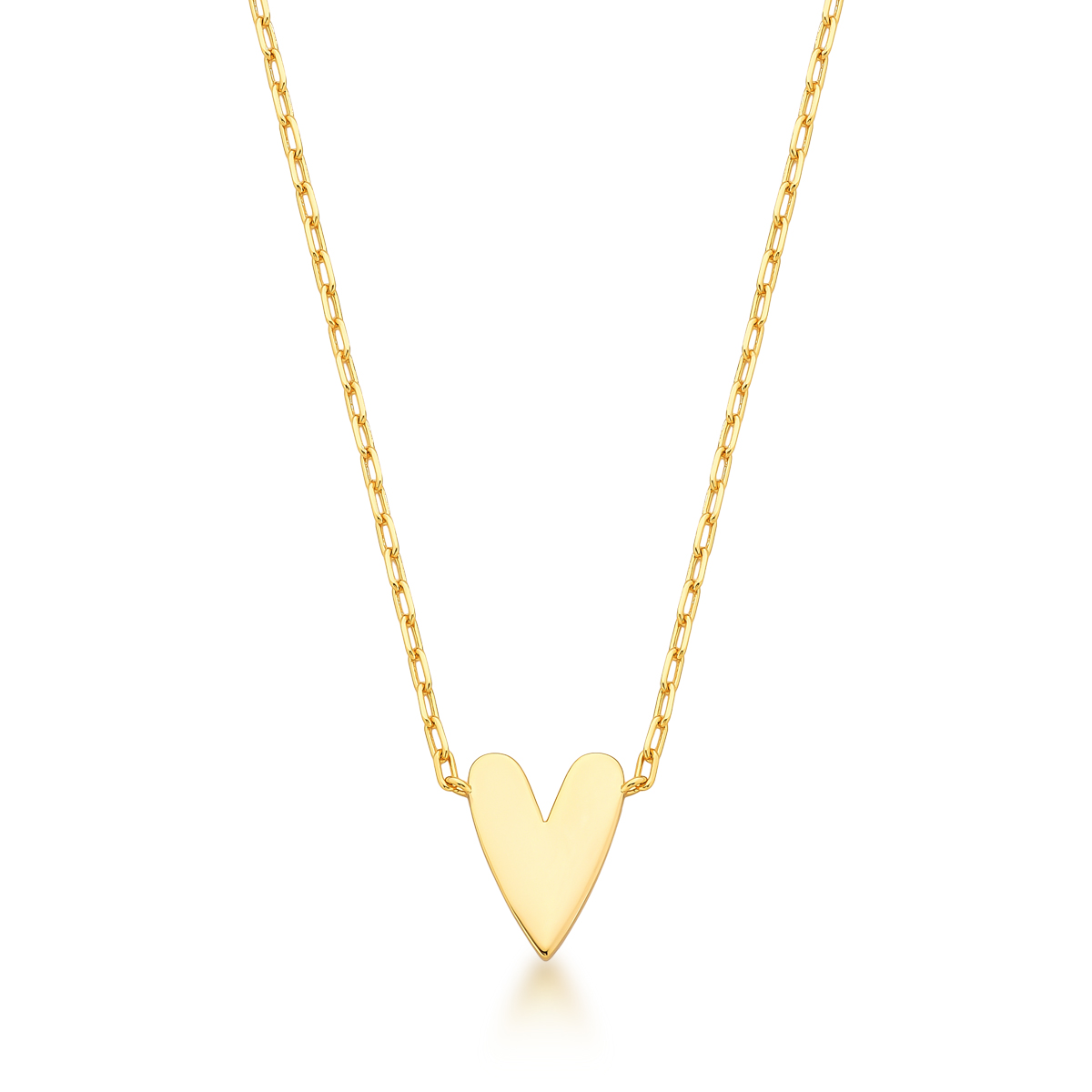 O pingente em formato de coração liso traz um toque moderno e romântico, com acabamento impecável e brilho suave. A corrente malha Cartier, conhecida por sua elegância e resistência, complementa a peça com um caimento leve e refinado.