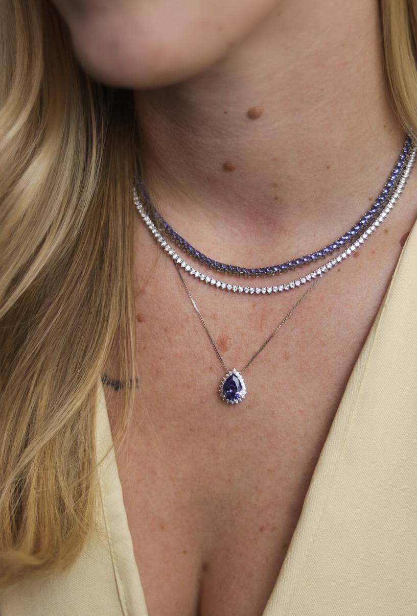 Elegante, delicado e cheio de presença — o Colar Gota 8mm em Prata 925 traz uma zircônia na cor tanzanita, conhecida pelo seu tom azul sofisticado e luminoso.
