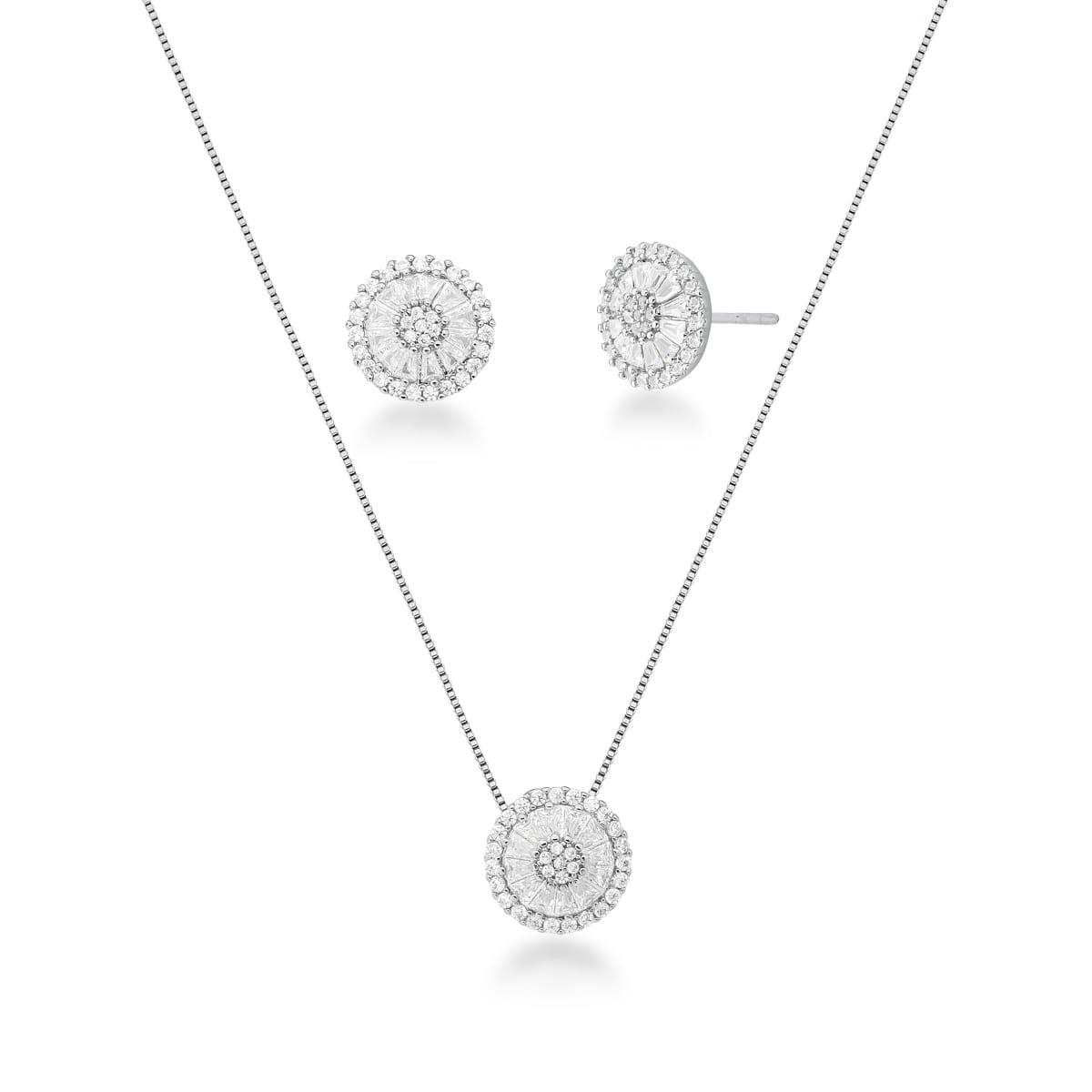Conjunto delicado composto por brinco e colar, ambos com design sofisticado que combina dois elementos clássicos: