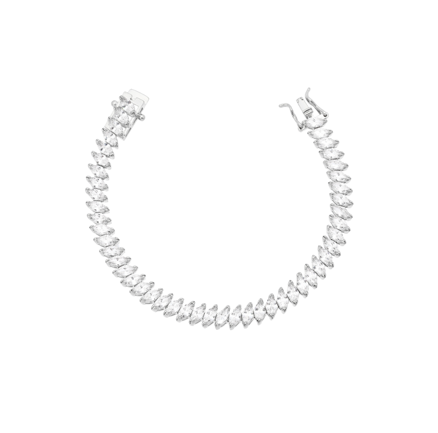 A Pulseira Riviera de Navetes 3x6mm é uma peça de luxo que combina brilho intenso e design sofisticado. Suas pedras em formato navete trazem um efeito elegante e moderno, destacando o pulso com muito glamour.