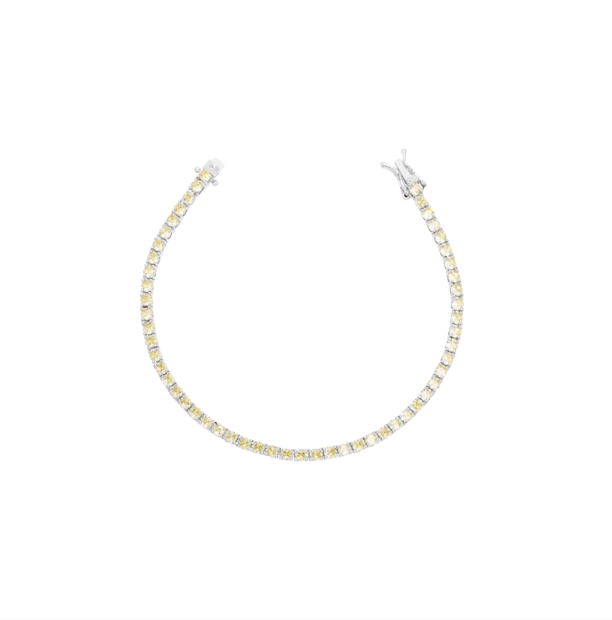 A Pulseira Riviera Yellow Fancy é uma semijoia sofisticada e cheia de personalidade, trazendo o brilho intenso das pedras amarelas em uma linha contínua que ilumina qualquer produção.